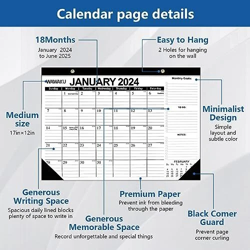 Desk Calendar 2024 2025 Large 17×12 inch, 2 Pcs/Pack, Wall